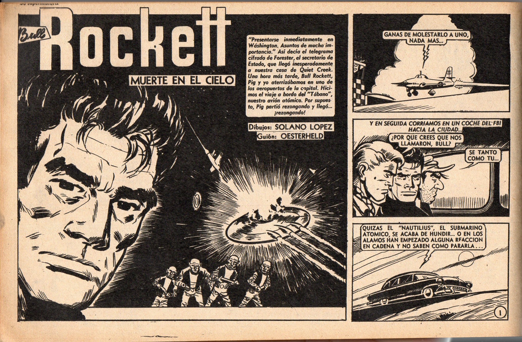 Oesterheld, Héctor Germán y Solano López, Francisco (1957), “Bull Rockett. Muerte en el cielo”, Super Misterix, 428: 60–81.