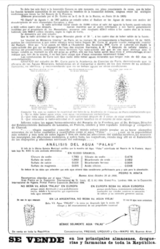 xSq20 – Publicidad Aguas Palau CyC 474 Publicidad de “Agua Palau”, Caras y Caretas, año X, n° 474, 2 de noviembre de 1907. Descargar libro en PDF por Gabriela